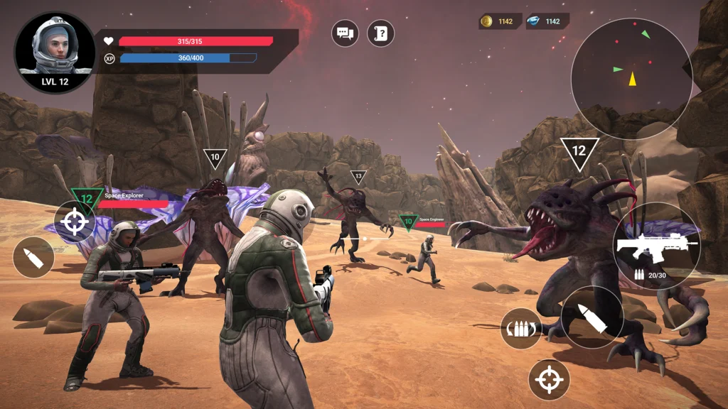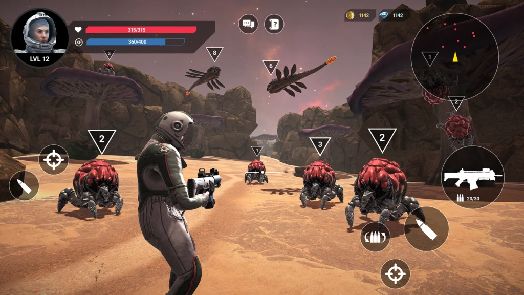 - Evolua seu astronauta eliminando inimigos, completando missões e conquistando recursos raros.