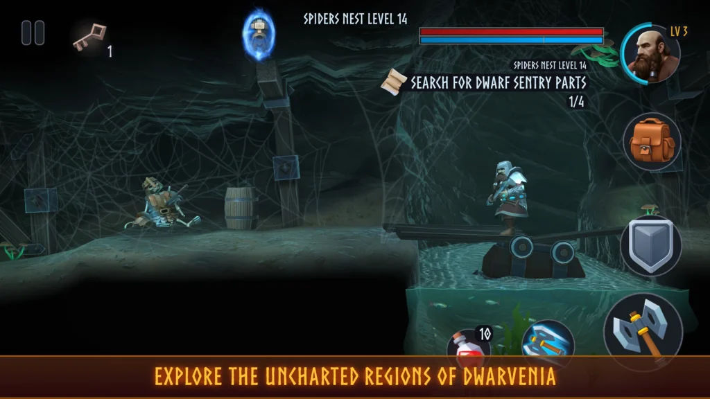 Aprimore seu equipamento, desbloqueie machados e armaduras épicas e fique mais forte enquanto repele os ocupantes de Dwarvenia.